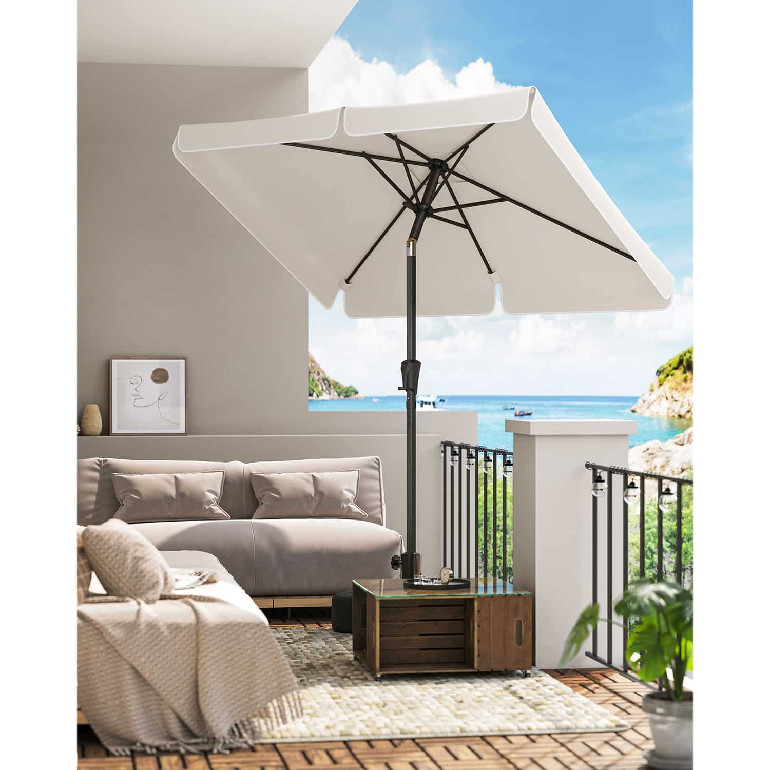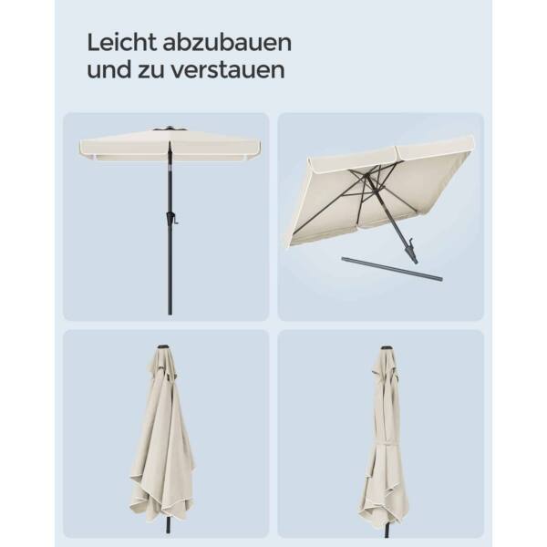Šis pastatomas stačiakampis skėtis yra puikus pasirinkimas norint apsisaugoti nuo saulės ir mėgautis lauko erdve. Skėtis yra smėlio spalvos, todėl puikiai derės prie įvairių lauko baldų ir aplinkos.