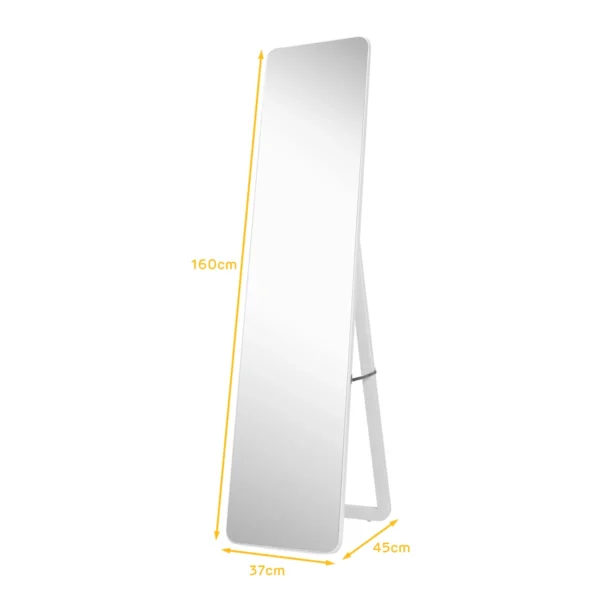 Pastatomas veidrodis 45x37x160cm baltos spalvos puikiai tinka įvairiems interjero sprendimams. Viso ilgio veidrodis leidžia matyti atspindį nuo galvos iki kojų, o medžio masyvo rėmas užtikrina stabilumą ir ilgaamžiškumą. Dėl nedūžtančios apsauginės plėvelės veidrodis yra saugesnis naudoti kasdienėje aplinkoje.