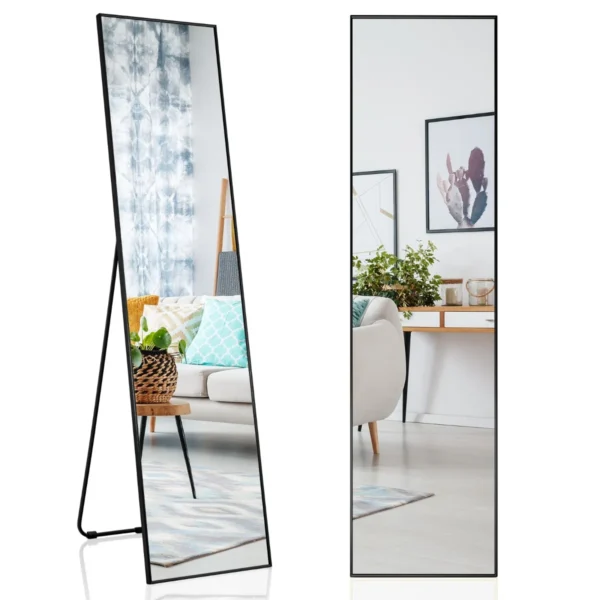 Pastatomas veidrodis 48x40x160cm juodos spalvos yra puikus sprendimas tiek miegamajam, tiek prieškambariui ar svetainei. Šis didelis, viso ilgio veidrodis suteikia aiškų, neiškraipytą vaizdą ir leidžia patikrinti aprangą prieš išeinant. Dėl dviejų montavimo galimybių jį galima pastatyti ant grindų arba pakabinti ant sienos, taupant vietą mažose erdvėse.