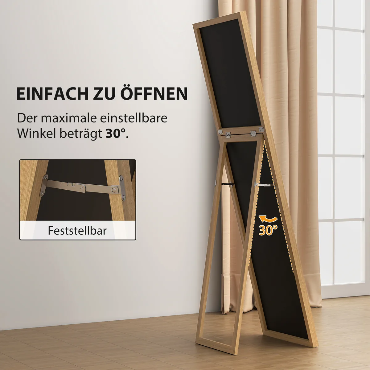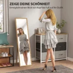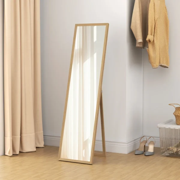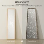 Su šiuo dideliu HOMCOM veidrodžiu galite būti tikri, kad kiekvieną rytą atrodysite gerai. Viso ilgio veidrodis yra pagamintas iš MDF medienos, kad būtų patogu naudoti. Jis yra gaivios ir pritaikomos spalvos, kuri lengvai derės prie jūsų dekoro. Siekiant didesnio stabilumo, laikiklis ir persirengimo veidrodis yra tvirtai sujungti metaliniais vyriais – būtina turėti bet kuriame miegamajame, svetainėje ar prieškambaryje.