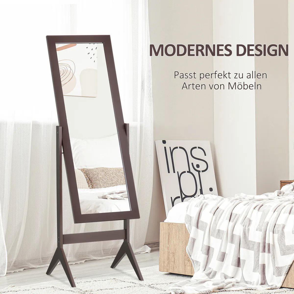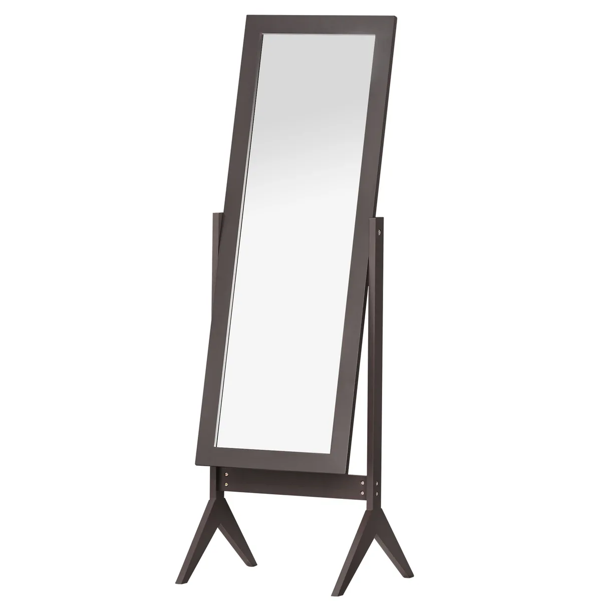 Kam neerzino veidrodis, kuris ryte yra per mažas? Tačiau tai nebūtinai turi būti: su šiuo HOMCOM veidrodžiu visu ūgiu puikiai matote savo aprangą nuo viršaus iki apačios. Dėl komplekte esančių pakreipimo varžtų veidrodį galite naudoti dviem skirtingomis kampo pozicijomis. Paprastas viso ilgio veidrodžio dizainas tinka praktiškai prie bet kokio gyvenimo stiliaus. Graži detalė miegamajam ar persirengimo kambariui, prieškambariui ar vonios kambariui.