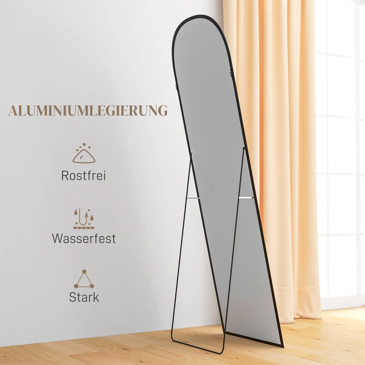 Atraskite HOMCOM viso ilgio veidrodžio žavesį – funkcionalumo ir elegancijos derinį. Nerūdijantis ir vandeniui atsparus aliuminio lydinio rėmas, šis veidrodis pakeis bet kurį kambarį. Šis universalus stovimas veidrodis gali būti tvirtinamas prie sienos arba laisvai pastatomas, nesvarbu, ar norite viso ūgio vaizdo, ar akcento. Jo arkos forma suteikia jūsų miegamajam rafinuotumo, todėl tai yra idealus pasirinkimas elegantiškiems namams.
