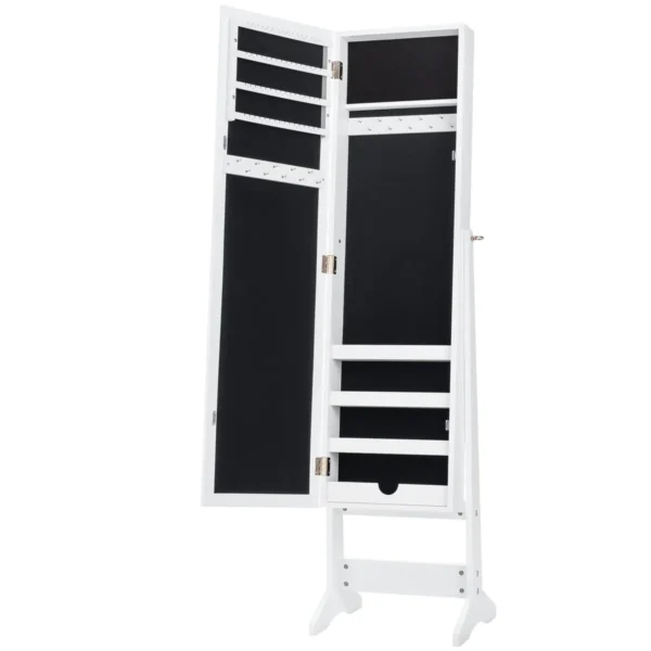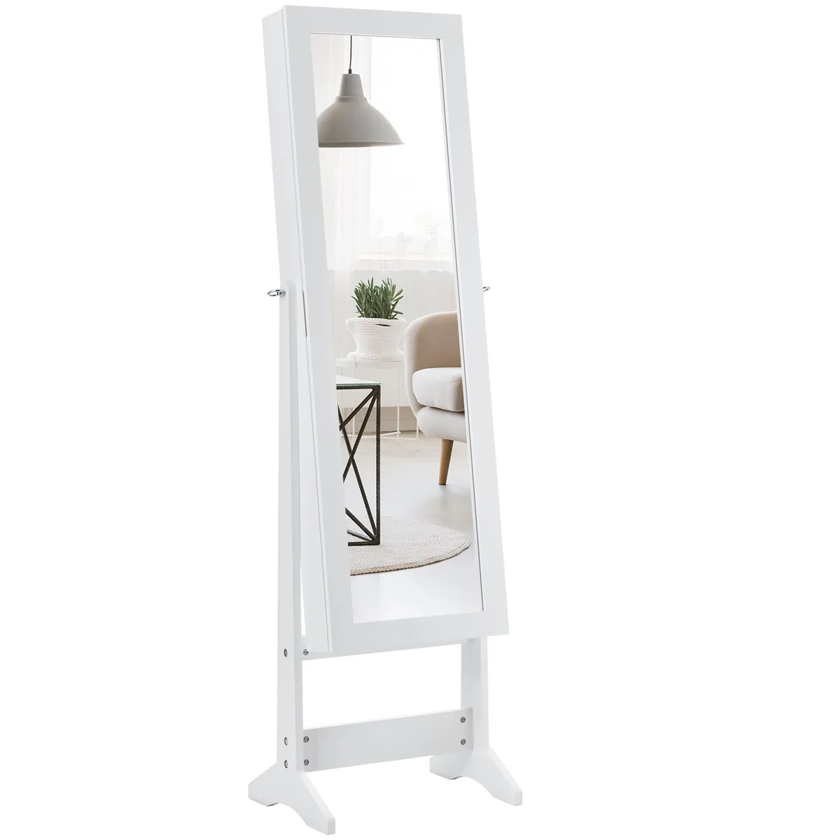 Pastatomas veidrodis-papuošalų spintelė 35x30x144 cm baltos ir juodos spalvos – praktiškas sprendimas jūsų namams. Ši laisvai stovinti papuošalų spintelė su veidrodžiu padeda organizuoti ir saugoti įvairius papuošalus, suteikiant patogią kūno atspindžio galimybę.