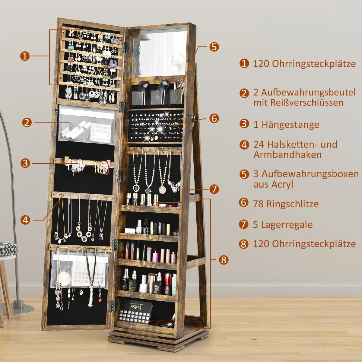 - 1 x pastatoma juvelyrinių dirbinių spintelė su veidrodžiu