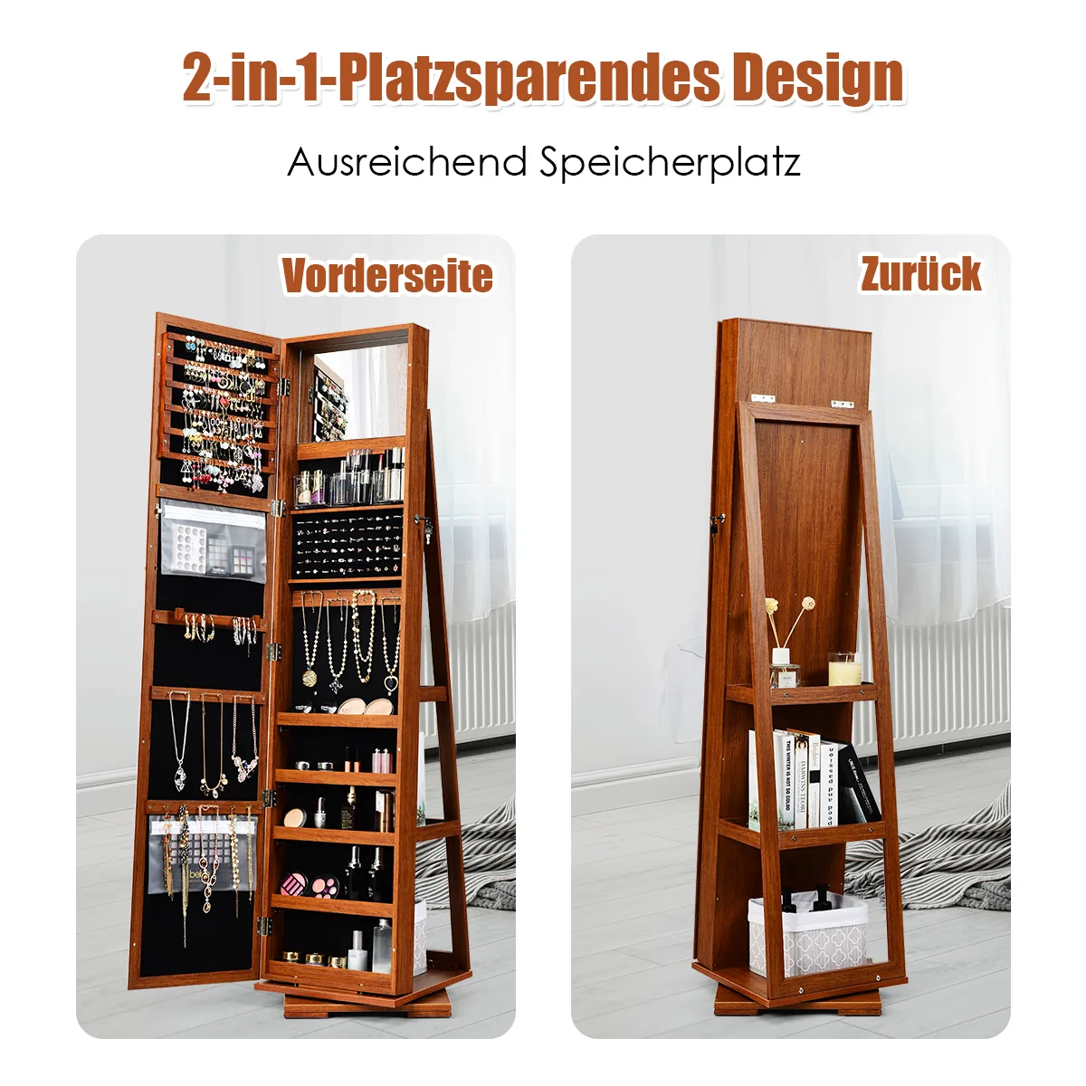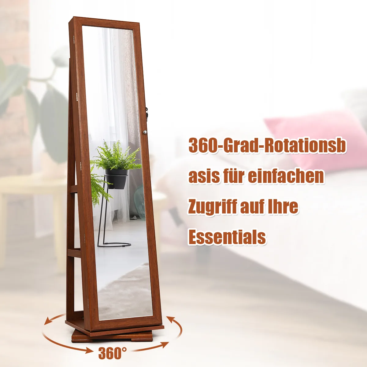 - 360 laipsnių besisukantis pagrindas leidžia lengvai pasiekti norimus papuošalus ir kosmetiką.