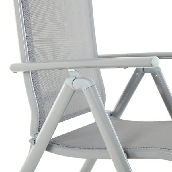 Pagaminta iš aukštos kokybės sintetinio pluošto audinio, ši kėdė leidžia orui cirkuliuoti ir suteikia komfortą. Tvirtas aliuminio rėmas užtikrina ilgą tarnavimo laiką. Praktiški porankiai ir reguliuojamas atlošas leidžia jums rasti patogiausią sėdėjimo padėtį. Tai puiki vieta atsipalaiduoti vasarą, mėgautis vėsiais gėrimais arba stebėti nuostabų saulėlydį.