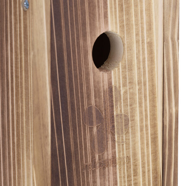 Paprastas montavimas: Dėl išgręžtos skylės inkilą lengva pritvirtinti prie medžio, o rekomenduojamas aukštis yra 2-3 metrai nuo žemės.