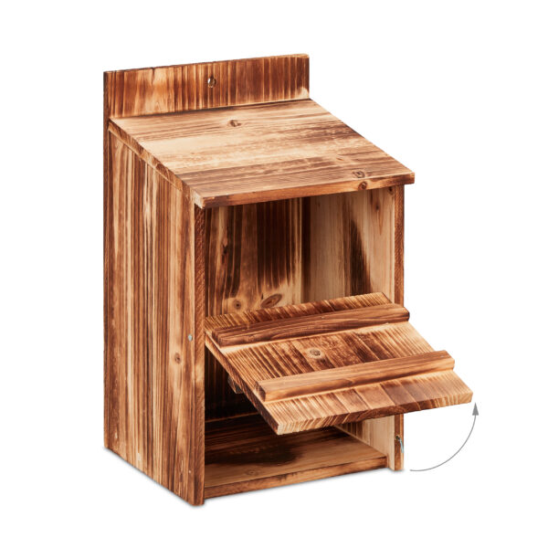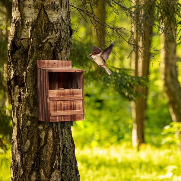 - Lengva priežiūra: Atverčiamos durys leidžia lengvai išvalyti lizdą pasibaigus veisimosi sezonui, užtikrinant švarą ir higieną.