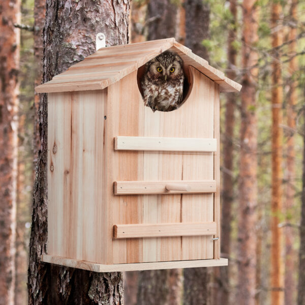 Šis elegantiškas ir funkcionalus paukščių inkilas yra puiki pagalbinė priemonė įvairių rūšių pelėdoms kelti lizdus. Sukurtas atsižvelgiant į natūralius paukščių poreikius, jis suteikia galimybę jums ir jūsų šeimai stebėti mažesnių rūšių pelėdų, tokių kaip mažoji pelėda ar šiurkščiakojė pelėda, veisimąsi.