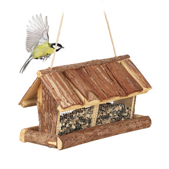 - Nuimamas Stogas: Dėl nuimamo stogelio maistą galima greitai ir lengvai papildyti, užtikrinant nuolatinį paukščių maitinimą.