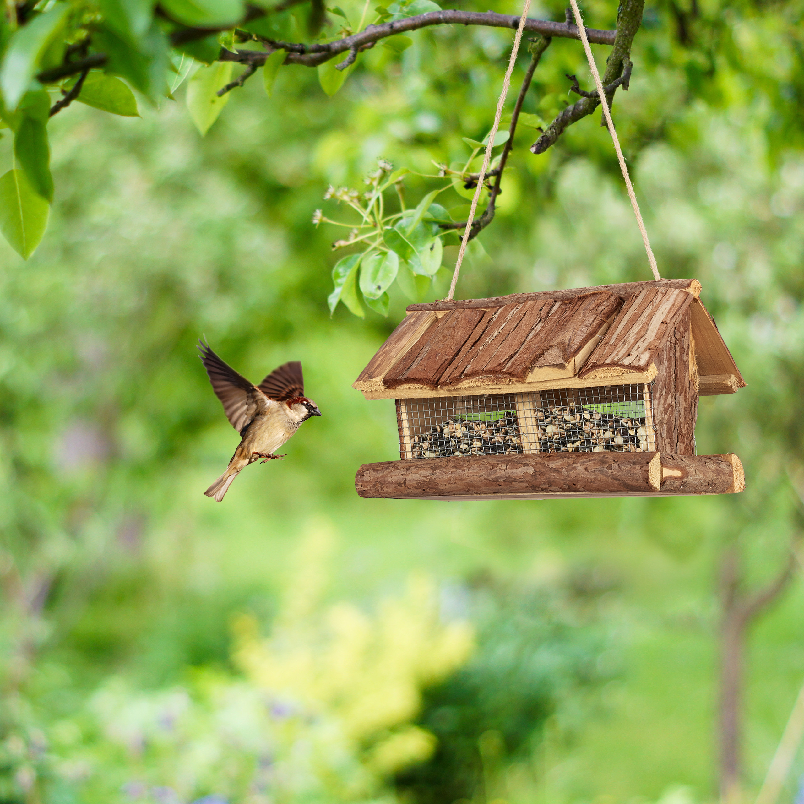 - Pakabinama Konstrukcija: Lesyklėlę galima lengvai pritvirtinti prie šakos ar kito paviršiaus, naudojant patogią suspensiją.