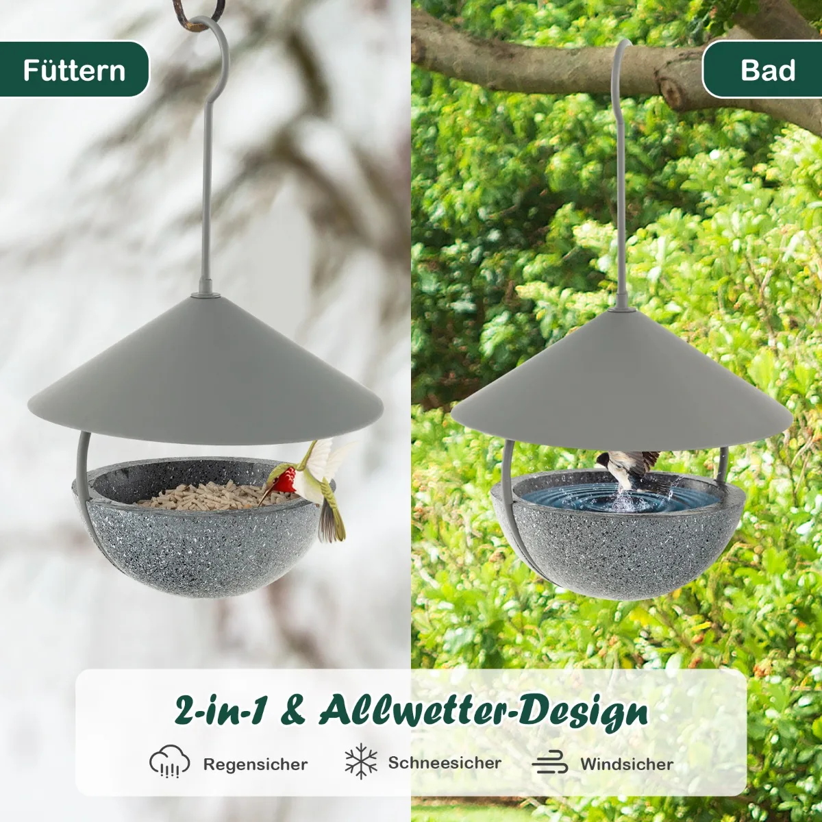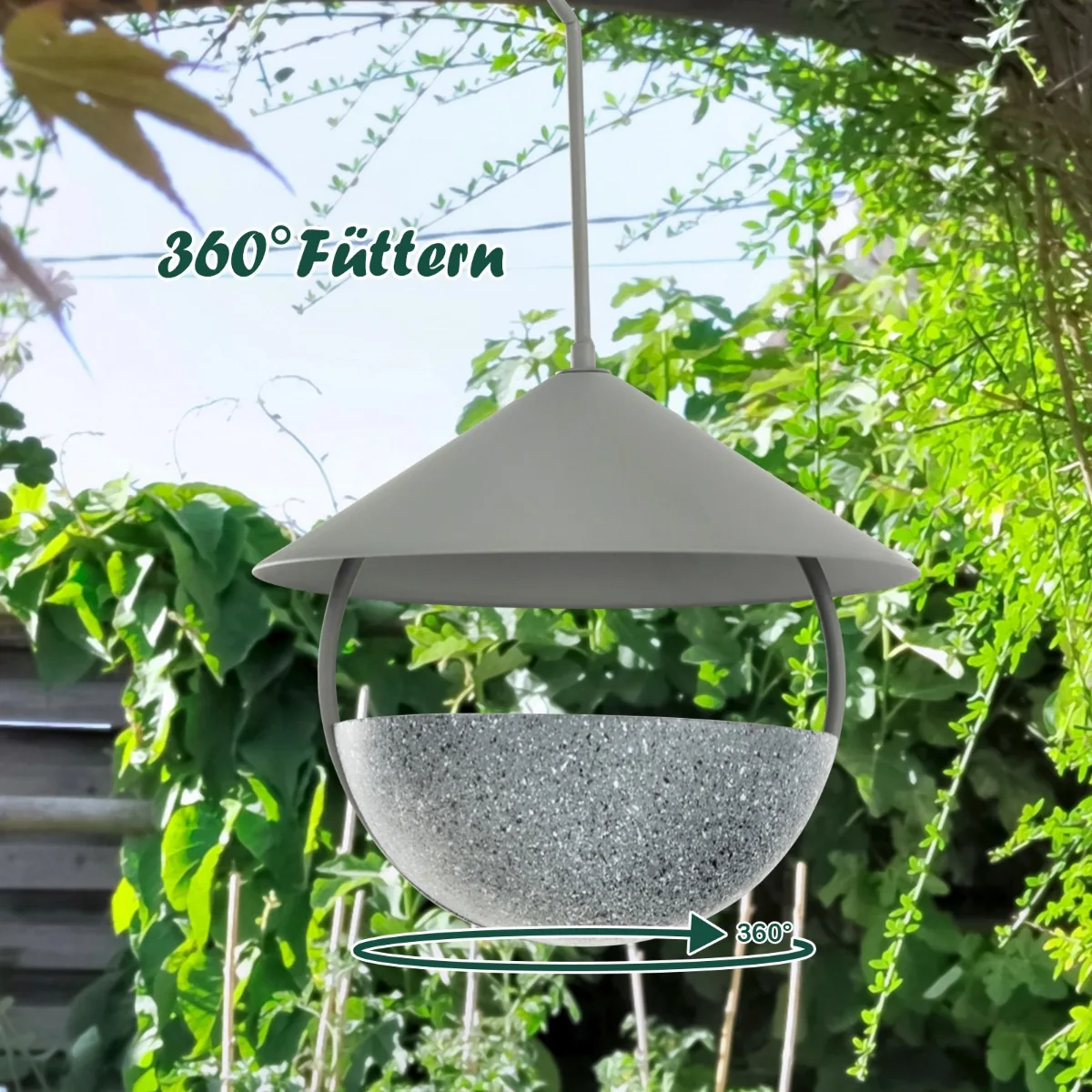 - Pakabinama paukščių lesyklėlė su metaliniu kupolu ir dervos pagrindu, užtikrinanti ilgaamžiškumą.