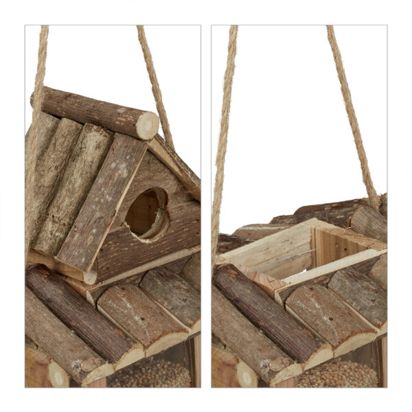 - Paprastas montavimas: Lesyklėlę galima lengvai pakabinti ant medžio naudojant pridedamą virvelę.