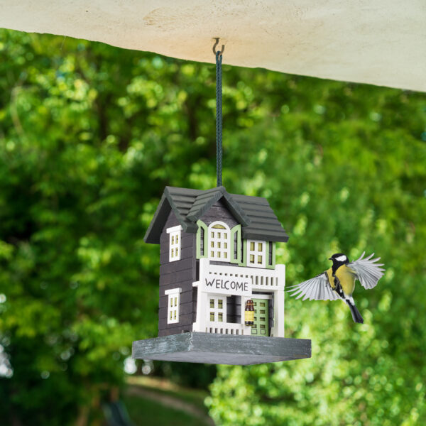 - Stilingas dizainas: Detalus medinės paukščių stoties dizainas suteikia elegancijos ir išskirtinumo jūsų sodui.