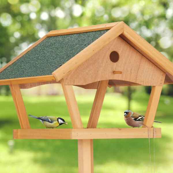 - Natūralus stilius: Lesyklėlė primena nedidelį namelį, puikiai įsiliejantį į gamtos aplinką.