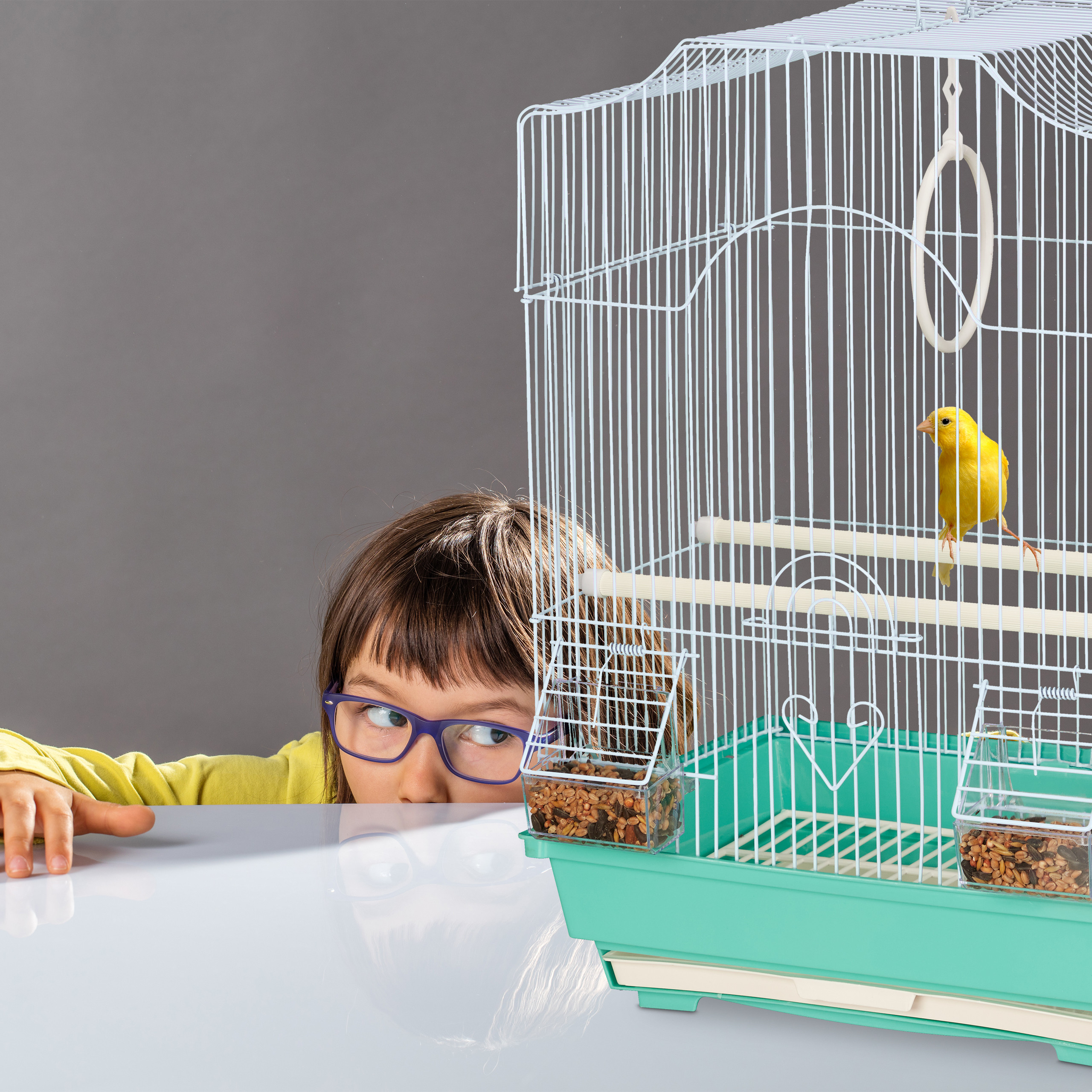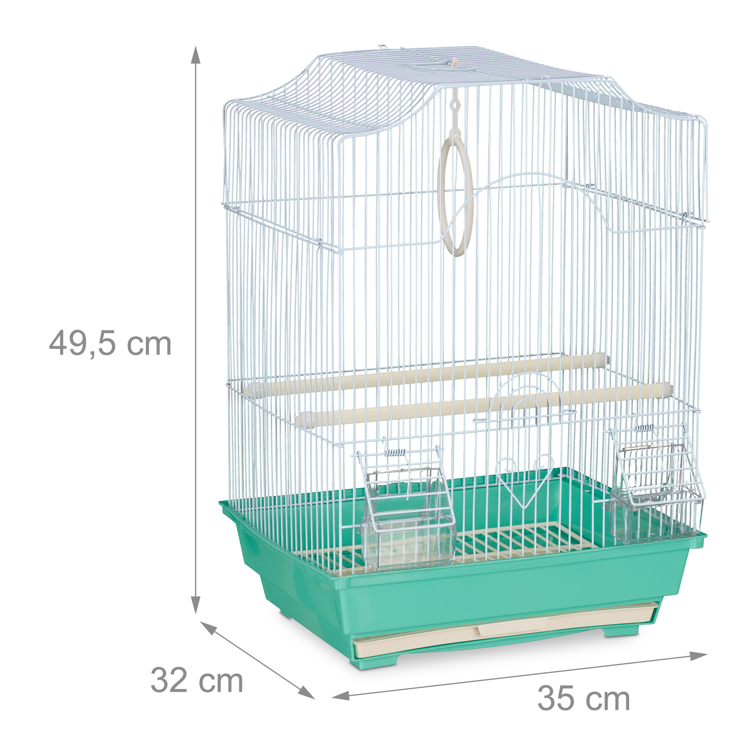 - Matmenys: 49,5 x 35 x 32 cm – optimalus dydis, suteikiantis pakankamai erdvės jūsų paukščiui judėti ir žaisti.