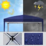 Planuojate gimtadienį lauke? Ar norėtumėte mėgautis gamta, bet bijote nusideginti? Ši pavėsinė ateis į jūsų pagalbą. Ji suteikia malonų pavėsį, kai saulė yra aukštai danguje, arba apsaugo jūsų svečius nuo nedidelio lietaus. Paimkite kėdę, gurkšnokite mėgstamą gėrimą ir stebėkite, kaip slenka debesys.