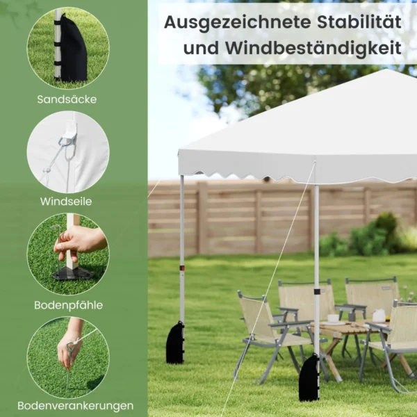 Pavėsinė 300x300x286cm, baltos spalvos, suteikia patikimą pastogę įvairioms lauko veikloms. Reguliuojamas aukštis ir lengvas iššokantis dizainas užtikrina paprastą naudojimą bei patogų transportavimą. Ši lauko pavėsinė yra universali apsauga nuo saulės ir lengvo lietaus, tinkama piknikams, renginiams ar stovyklavimui.