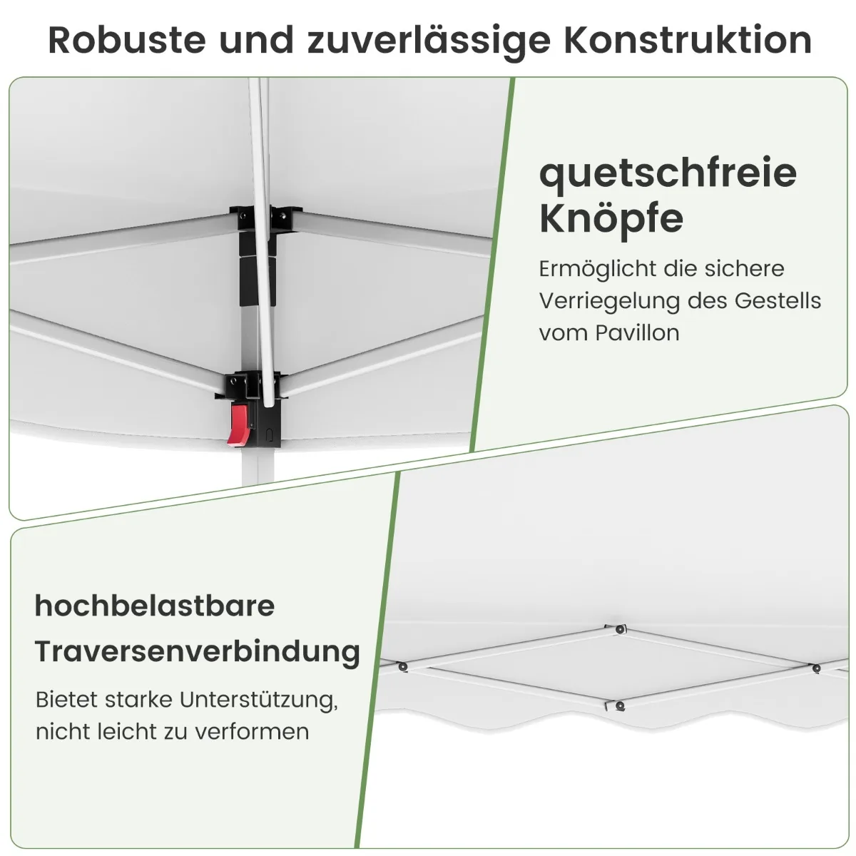 - Iššokantis dizainas leidžia greitai pastatyti ir sulankstyti be įrankių.