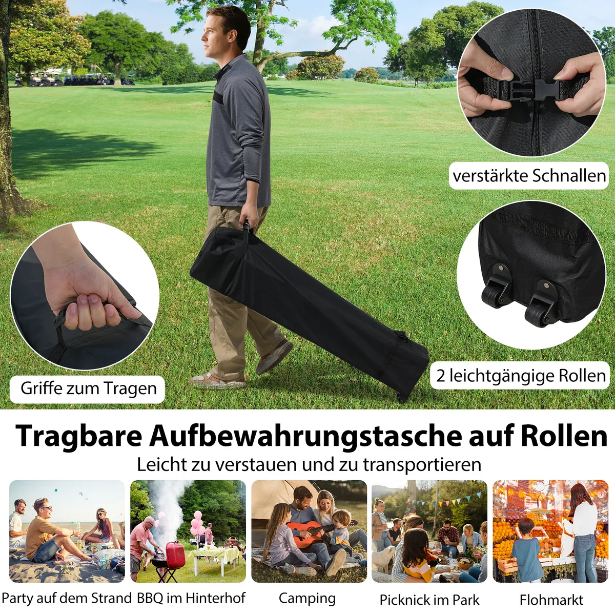 • Nešiojamas dizainas su sulankstoma struktūra ir ritininiu maišeliu patogiam transportavimui.