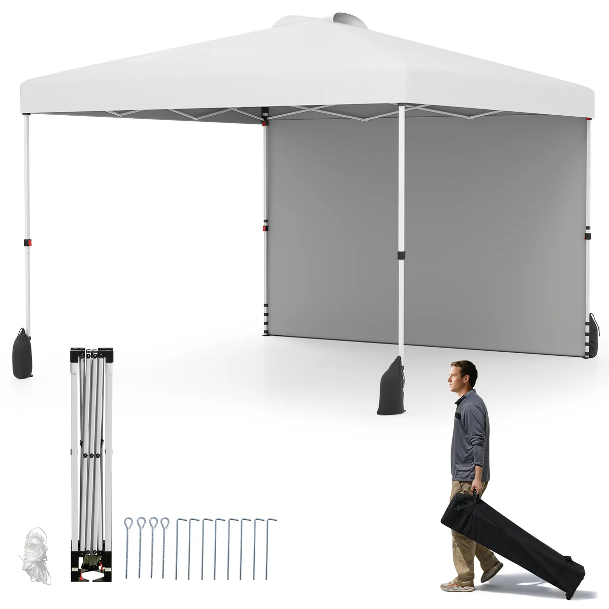 Pavėsinė 300x300x286cm, baltos spalvos – praktiškas lauko sprendimas šešėliui užtikrinti. Dėl lengvos iššokančios konstrukcijos ir reguliuojamo aukščio ji yra patogi naudoti įvairiomis oro sąlygomis. Pavėsinė tinka tiek sodui, tiek stovyklavimui ar renginiams lauke.