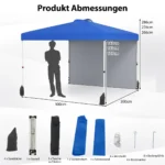 Pavėsinė 300x300x286cm, mėlynos spalvos, yra praktiškas sprendimas lauko renginiams ir poilsiui. Tai lengvai surenkama ir transportuojama lauko palapinė, pagaminta iš patvaraus Oksfordo audinio su sidabrine danga. Pavėsinė užtikrina apsaugą nuo saulės ir lengvo lietaus, o jos konstrukcija pritaikyta skirtingiems aukščiams bei vėjo sąlygoms.