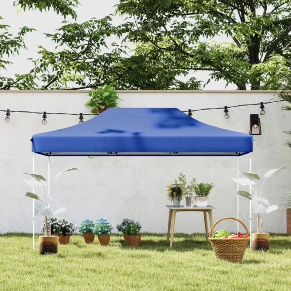 Pavėsinė 445x300x333 cm, mėlynos spalvos, yra praktiškas sprendimas lauko renginiams ir vakarėliams. Didelė komercinė palapinė pagaminta iš vandeniui atsparaus Oksfordo audinio, kuris užtikrina apsaugą nuo lietaus ir saulės. Pavėsinė turi reguliuojamo aukščio rėmą ir lengvai surenkamą iššokančią konstrukciją.