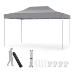 Pavėsinė 445x300x333 cm, pilkos spalvos, yra praktiška lauko konstrukcija, skirta apsaugai nuo saulės ir lengvam renginių organizavimui lauke. Pagaminta iš atsparaus oksfordo audinio, ji lengvai surenkama ir tinka įvairiems orų sąlygoms.