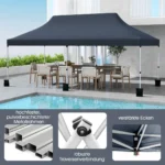 - Didelė 600 x 300 cm ploto pavėsinė su reguliuojamu 296–316 cm aukščiu.