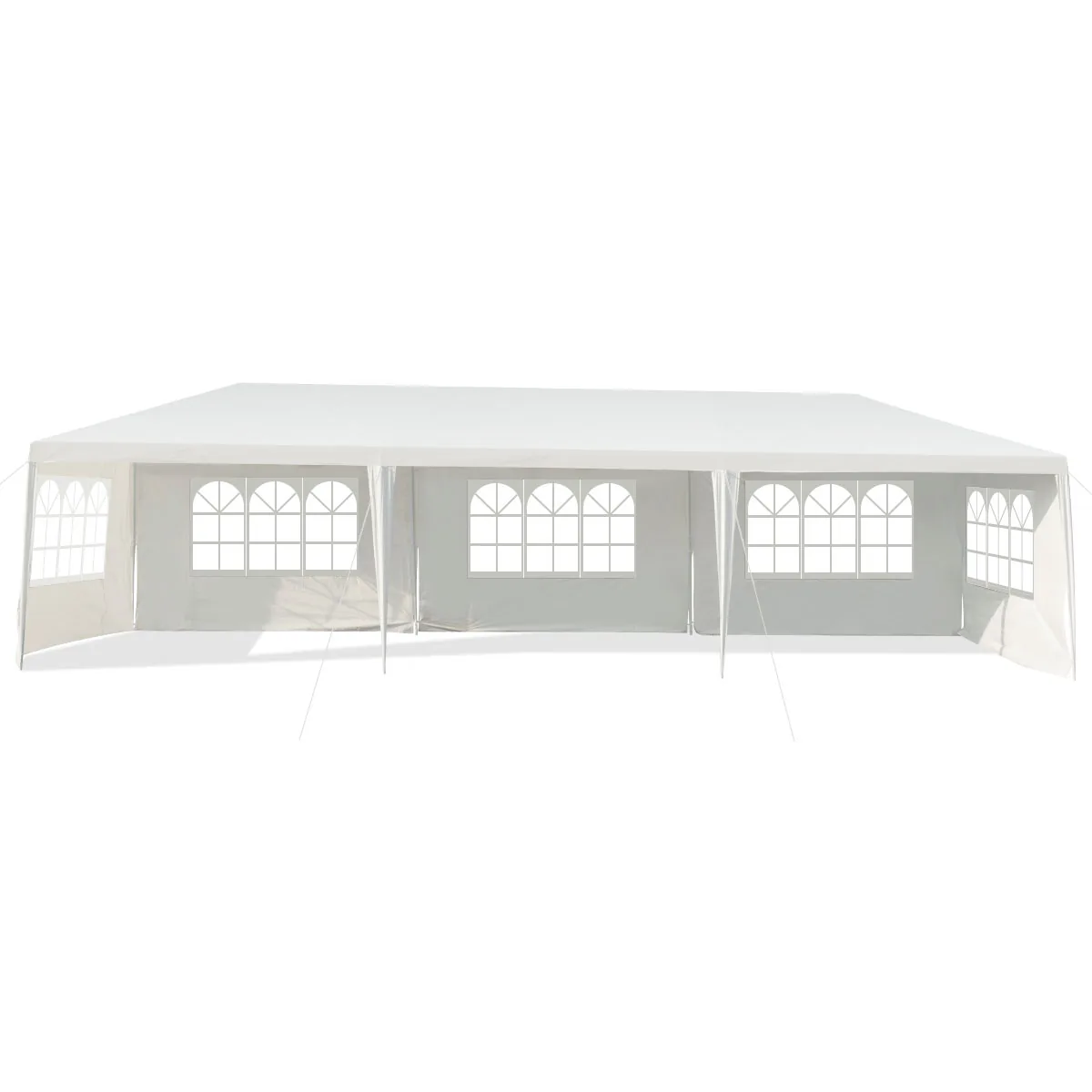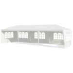 Pavėsinė 900x300x260cm, baltos spalvos, yra patikima apsauga lauke įvairioms laisvalaikio veikloms. Pagaminta iš miltelių būdu dengto plieno rėmo ir PE medžiagos, ji užtikrina ilgaamžiškumą bei atsparumą. Didelė erdvė ir penkios nuimamos šoninės sienelės su skaidriais langais suteikia lankstumo naudojimui.