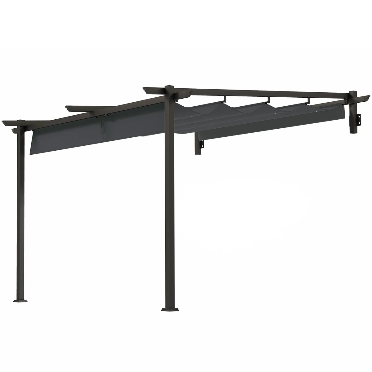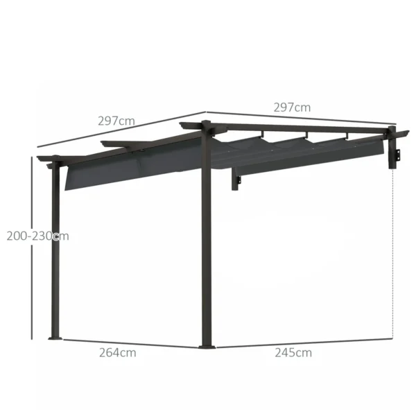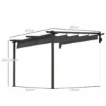 Outsunny pavėsinė su ištraukiamu stogu siūlo apsaugą nuo saulės lauke valgant, bendraujant ir ilsintis. Dėl pavėsinės brezento integruotų skylių lietaus vanduo iš karto nuleidžiamas, o tvirtas, nerūdijantis metalinis pavėsinės karkasas tvirtinamas prie sienos, kad lauke būtų patogus patalpose.