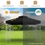 - Tinka daugumai standartinių 3×3 m medinių ir aliuminio pavėsinių.