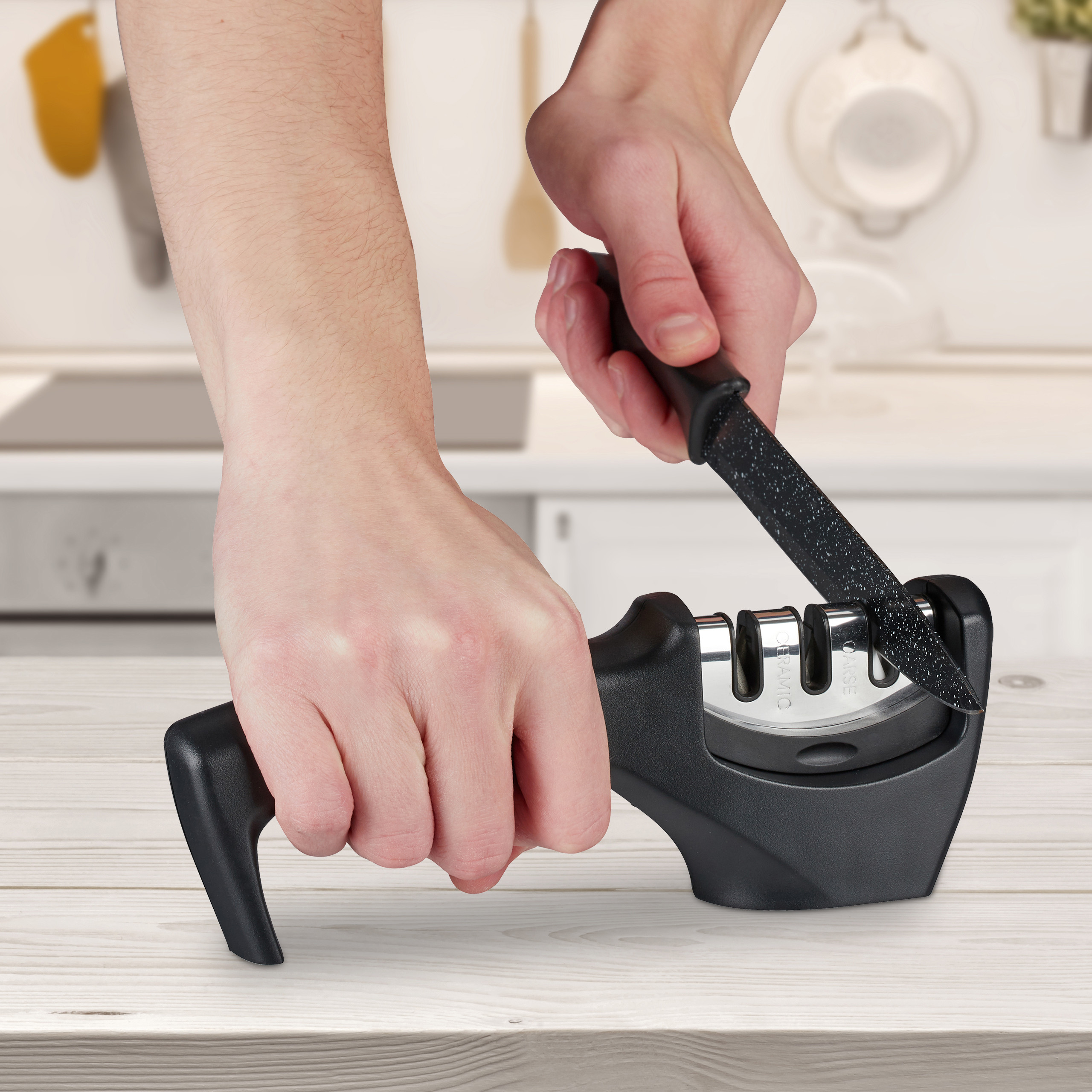 Įneškite profesionalumo į savo virtuvę su šiuo rankiniu peilių galąstuvu. Jei norite gaminti skanius patiekalus, aštrūs peiliai yra būtini. Šis 3 pakopų peilių malūnėlis padės jums pasiekti norimą aštrumą ir tikslumą.