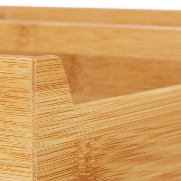 Įneškite tvarkos ir elegancijos į savo virtuvę su šiuo išskirtiniu peilių padėklu. Sukurtas iš natūraliai grūdinto bambuko medienos, šis padėklas ne tik puikiai dera su šiltais tonais, bet ir suteikia jūsų virtuvei modernų ir estetišką akcentą.