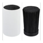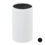 - Stabilumas ir dizainas: Apvalus peilių stovas su nuimamu juodų šerių įdėklu, kuris apsaugo jūsų peilius ir ašmenis nuo įbrėžimų.