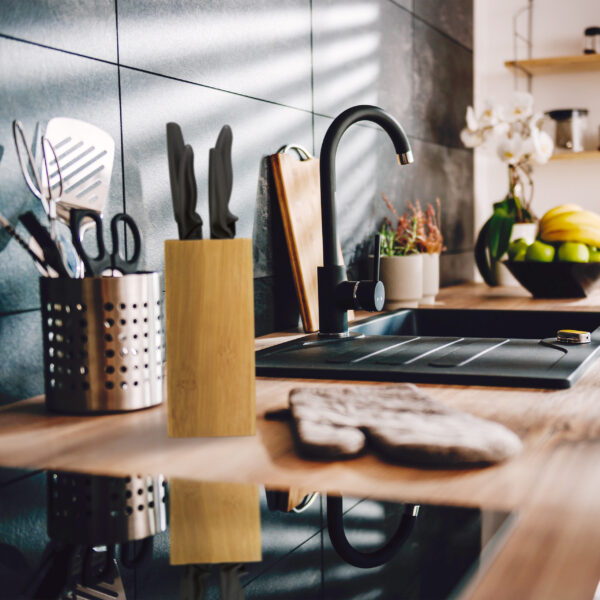 - Moderni bambuko išvaizda: šviesiai rudos ir juodos spalvos derinys suteikia stilingą ir natūralų akcentą jūsų virtuvės interjerui.
