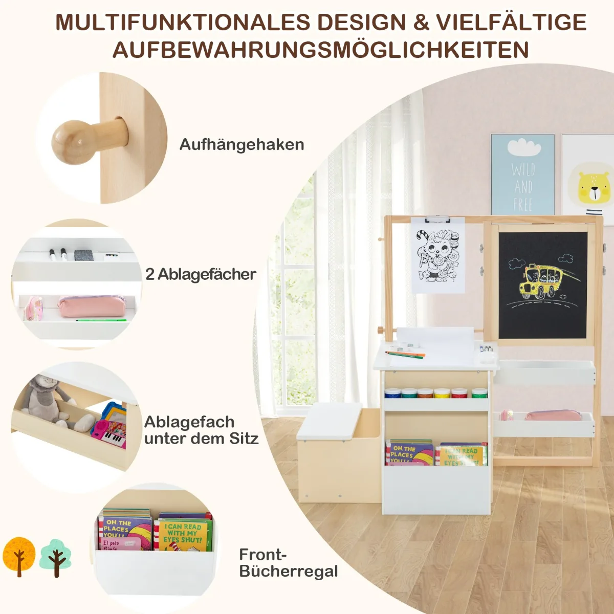 - Lengvai valomas stalviršis ir saugi medinė konstrukcija su užapvalintais kampais.
