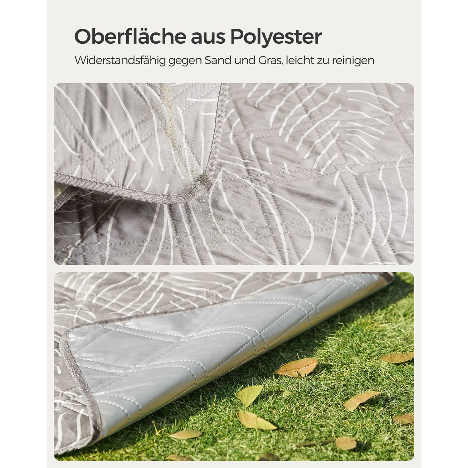 Antklodės paviršius pagamintas iš aukštos kokybės poliesterio, kuris yra atsparus dėmėms ir lengvai valomas. Viduje esantis putplasčio paminkštinimas užtikrina komfortą, o neaustinis audinys ir aliuminio danga suteikia papildomą izoliaciją nuo drėgmės ir šalčio.