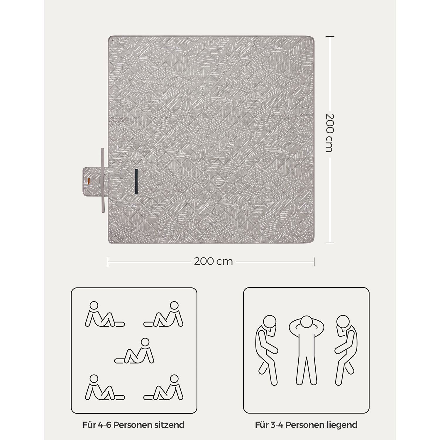 Išskleista antklodė yra 200 x 200 cm dydžio, todėl ji puikiai tinka šeimos iškyloms ar draugų susibūrimams. Sulenkta ji užima tik 42 x 18 x 18 cm, todėl yra lengvai transportuojama ir laikoma.