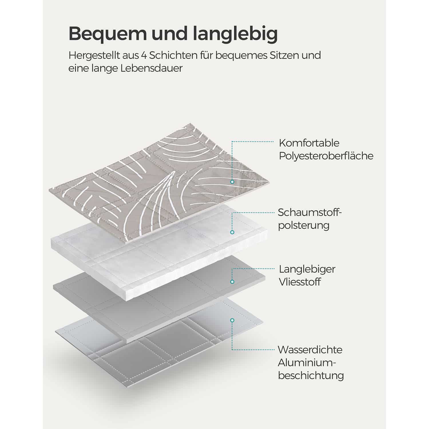 • Medžiaga: Poliesterio paviršius, putplasčio pamušalas, neaustinis audinys, aliuminio danga