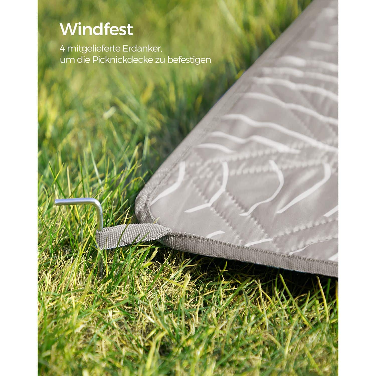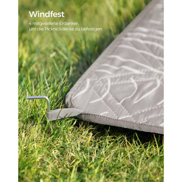 Pikniko antklodė 200 x 200 cm su 4 įžemintais inkarais, pilkos spalvos