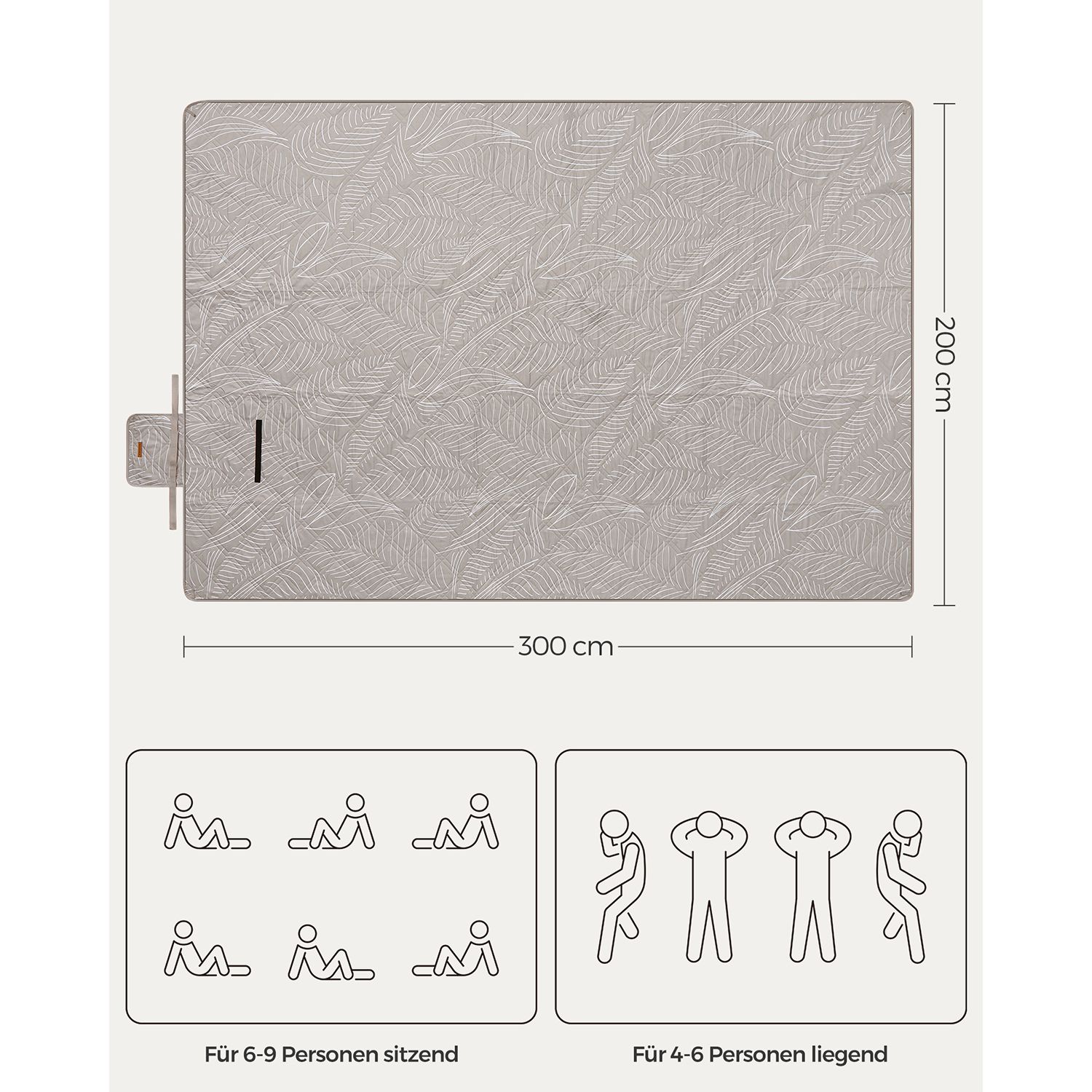 Antklodės išskleistas dydis yra 300 x 200 cm, todėl ji puikiai tinka didesnei kompanijai. Sulenkus, jos dydis sumažėja iki 42 x 19 x 19 cm, todėl ją lengva transportuoti ir laikyti. Svoris – tik 1,7 kg, todėl ji yra lengva ir patogi nešiotis.