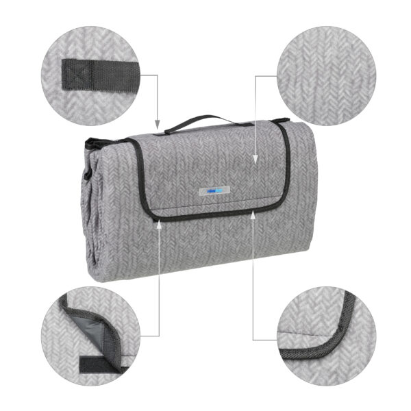 Pasinerkite į gamtos grožį ir mėgaukitės nerūpestingomis akimirkomis su mūsų didžiąja pikniko antklode. Ši elegantiška ir funkcionali antklodė yra puikus pasirinkimas iškyloms, paplūdimiams ir kitoms laisvalaikio veikloms. Jos pilka spalva suteikia subtilų ir modernų akcentą, kuris puikiai dera su bet kokia aplinka.