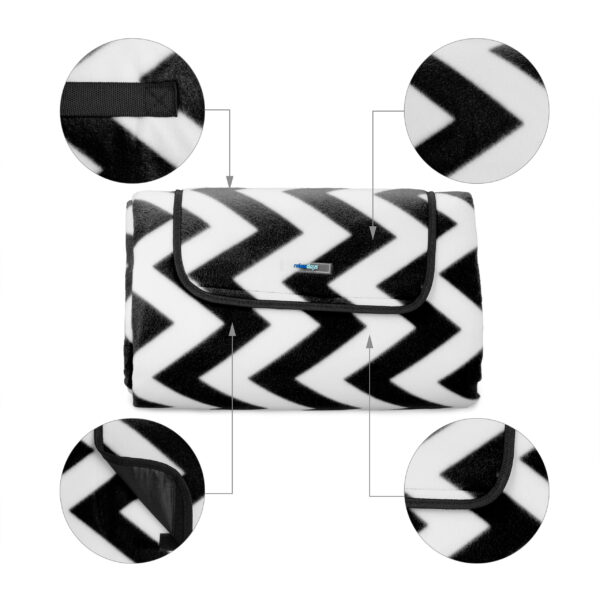 Pasiruoškite nepamirštamoms akimirkoms gamtoje su mūsų elegantiška ir funkcionalia pikniko antklode. Ši didelė, 200×300 cm dydžio antklodė yra puikus pasirinkimas tiek šeimos iškyloms, tiek draugų susibūrimams lauke. Jos juodos ir baltos spalvos dizainas su zigzago raštu suteikia stilingumo ir išskirtinumo.