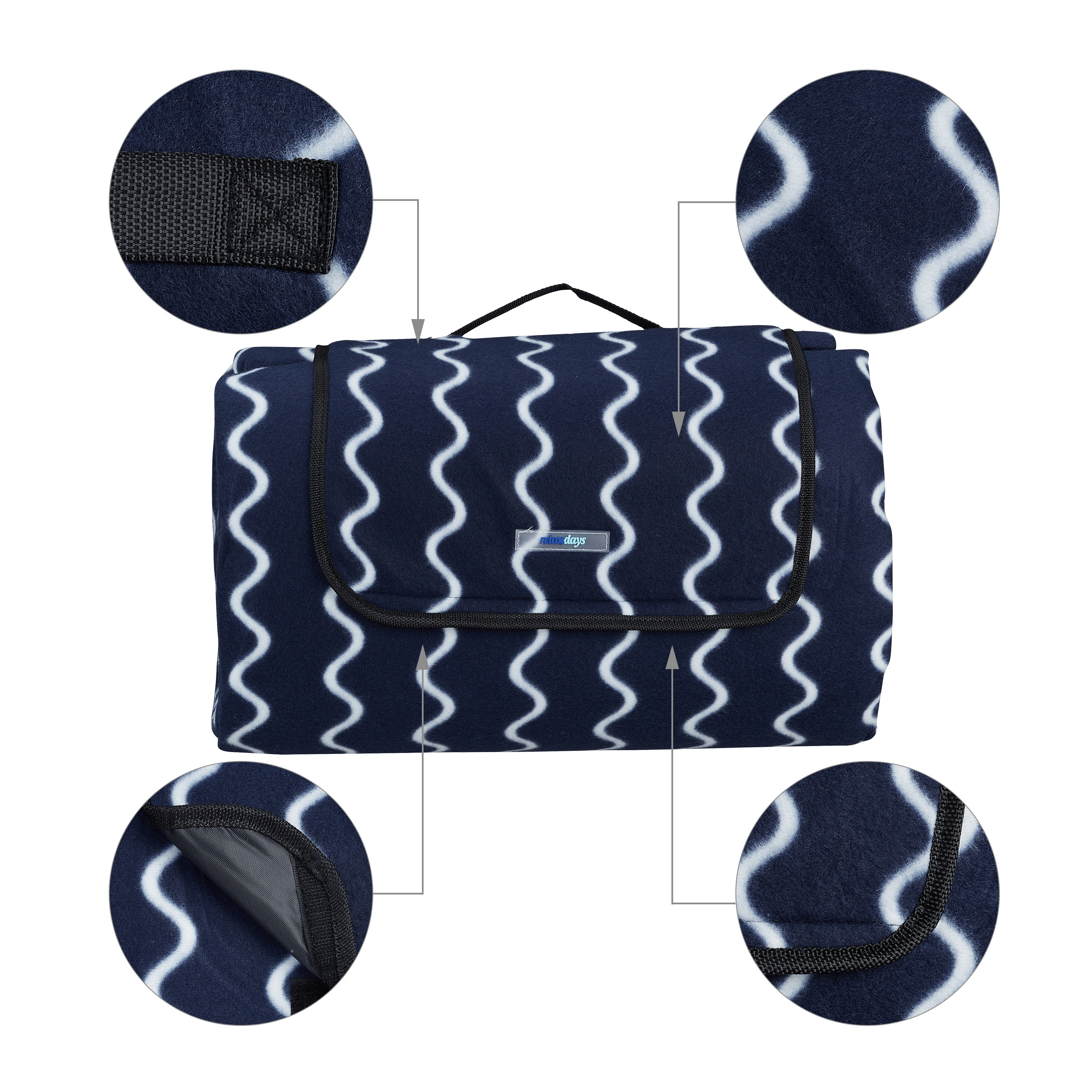 Ši pikniko antklodė yra puikus pasirinkimas saulės vonioms, kepsninėms su draugais ir šeima ar tiesiog atsipalaidavimui prie lauko baseino. Pasirinkite kokybę ir stilių su mūsų tamsiai mėlynos ir baltos spalvos pikniko antklode.