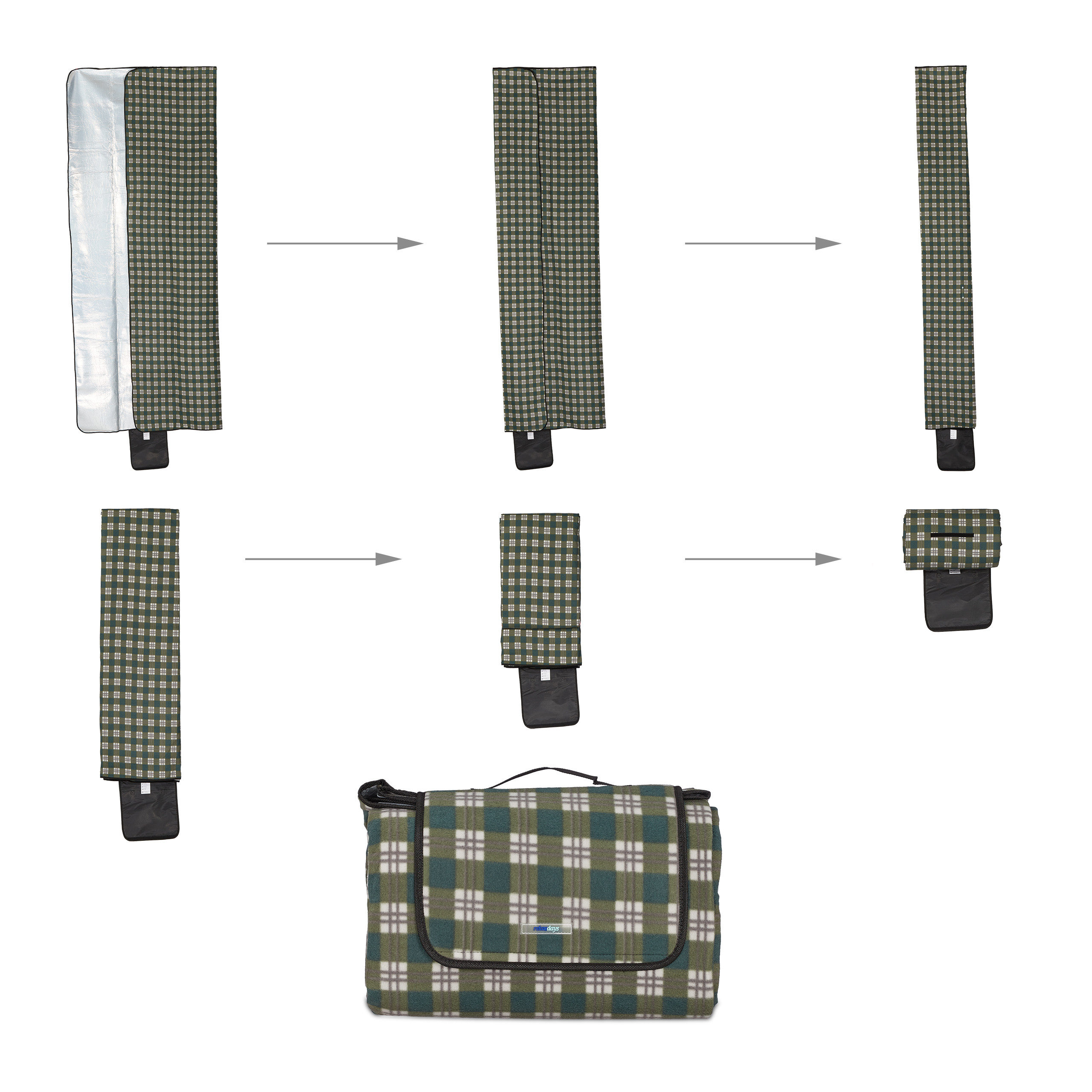Pikniko antklodė 200x300cm., tamsiai žalios/žalios/baltos spalvos
