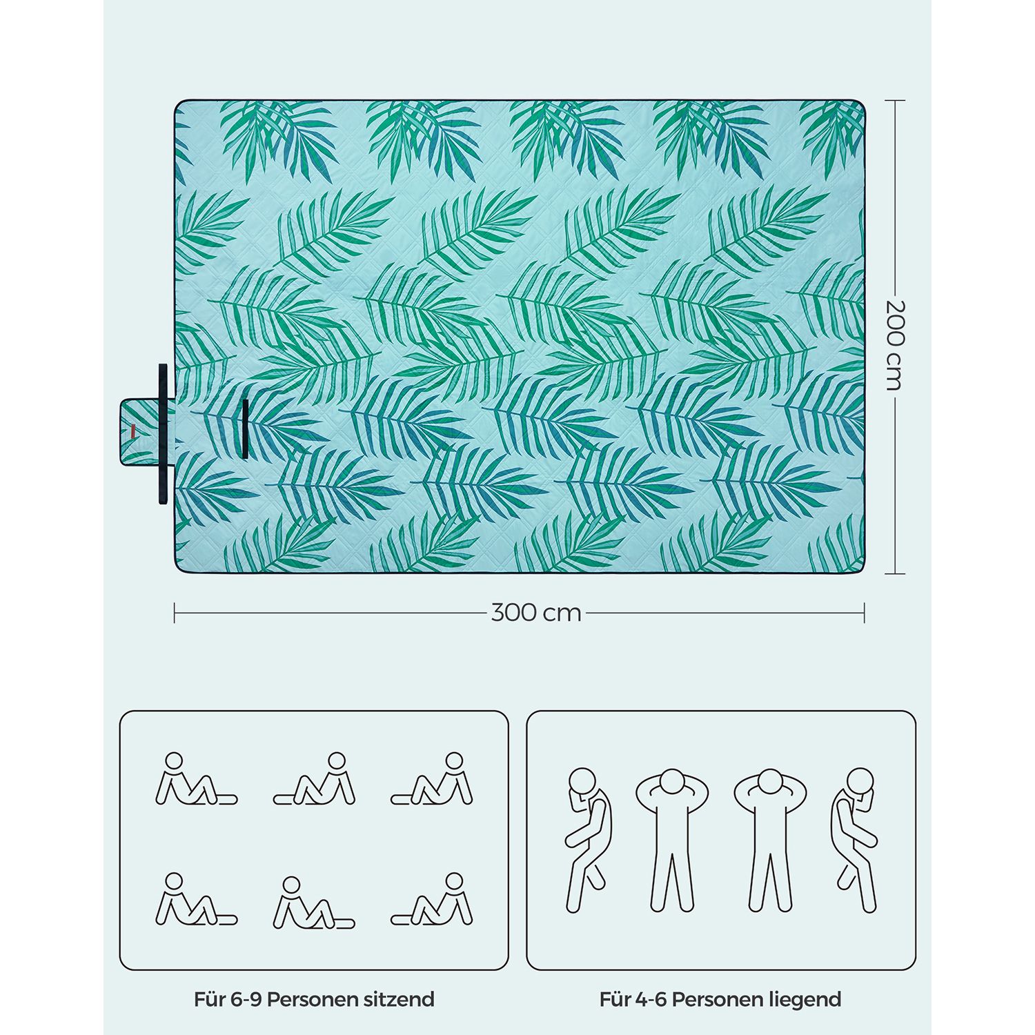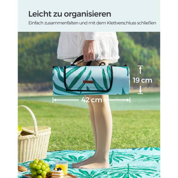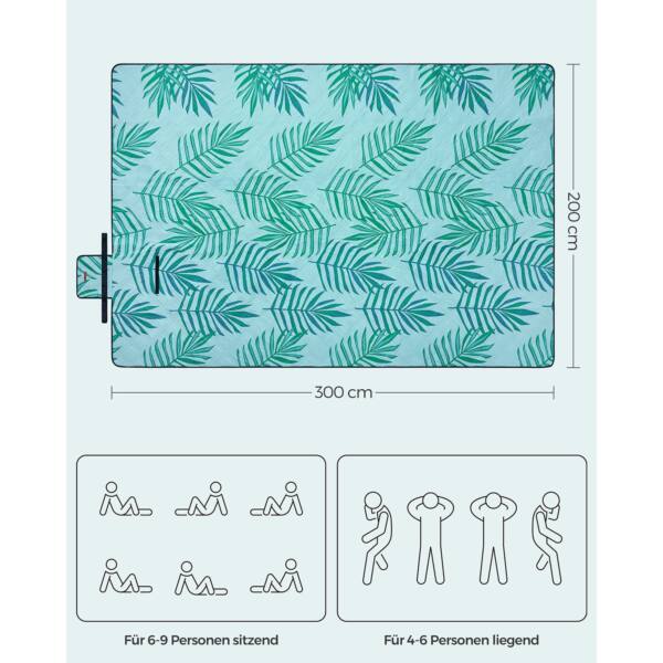 Ši pikniko antklodė / pledas 300 x 200 cm, mėlynos spalvos, yra puikus pasirinkimas lauko iškyloms, stovyklavimui ar poilsiui gamtoje. Jos šviesiai mėlyna spalva su tropinio paparčio motyvais suteikia gaivumo ir stilingumo.
