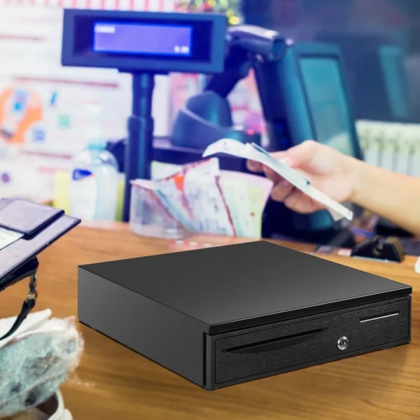 Pinigų stalčius 40,5x42x9 cm juodos spalvos skirtas efektyviam grynųjų pinigų tvarkymui kasose. Šis pinigų stalčius suderinamas su įvairiomis kasos aparatų sistemomis ir kvitų spausdintuvais, todėl puikiai tinka biurams, prekybos vietoms bei paslaugų sektoriui.