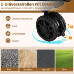 - Stabilūs ir universalūs ratai su stabdžių funkcija.