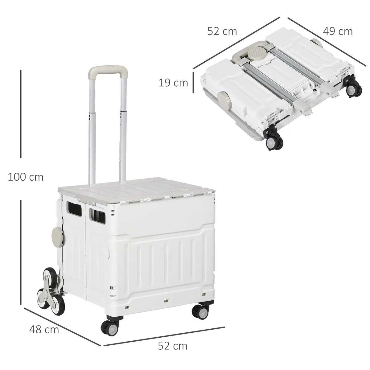 Pirkinių vežimėlis Homcom 52x48x100cm., baltos spalvos